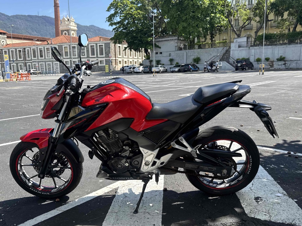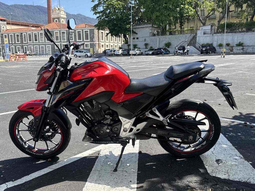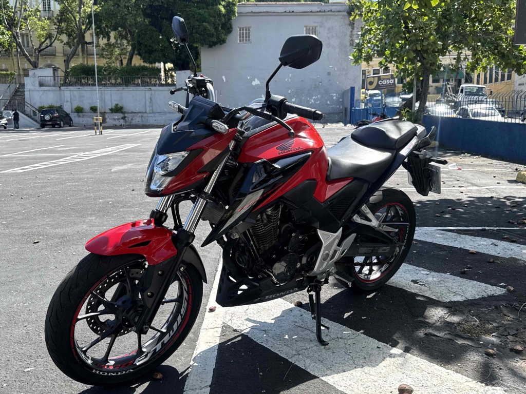 CB TWISTER 300F , FLEX , VERMELHA , MUITO NOVA !!!!!!!!!*A MOTO TEM POR LEILÃO DE ROUBADA E RECUPERADA *FICHA TÉCNICA:A ficha técnica da Honda CB 300F Twister CBS 2024 destaca seu motor flex de 293,5 cc, que entrega até 24,7 cv (etanol), câmbio de 6 marchas, injeção eletrônica PGM-FI, faróis/lanternas em LED, painel digital, chassi tipo Diamond Frame, suspensões com bom curso (130mm/120mm), freios a disco com sistema combinado (CBS), e pneus 110/70-17 (dianteiro) e 150/60-17 (traseiro). Motor e DesempenhoMotor: OHC, Monocilíndrico, 4 tempos, Arrefecido a Ar, Flex.Cilindrada: 293,5 cc.Potência Máxima: 24,7 cv (etanol) / 24,5 cv (gasolina) a 7.500 rpm.Torque Máximo: 2,67 kgfm (etanol) / 2,61 kgfm (gasolina) a 5.500 rpm.Alimentação: Injeção Eletrônica PGM-FI.Transmissão: 6 velocidades. Chassi e SuspensãoChassi: Diamond Frame.Suspensão Dianteira: Garfo telescópico (130 mm de curso).Suspensão Traseira: Monoamortecida (120 mm de curso). Freios e PneusFreio Dianteiro: A disco.Freio Traseiro: A disco.Sistema de Freio: CBS (Combined Braking System).Pneu Dianteiro: 110/70 – 17.Pneu Traseiro: 150/60 – 17. FICHA TECNICA: